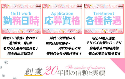 | 完全日払い制!オプション全額バック!! 1日30,000円以上可能!!月80万円稼ぐ女性もいます!!自走交通費+α『稼ぎたいけど、稼げない』お仕事をしている以上とても大事なことだと思います。1人あたりのお給料やバック率は当店より多くもらえるお店も沢山あることでしょう。 しかも仕事がなければ、収入もO円(^^ゞ当店の奥様達は、実際に1日、1週間、1カ月で稼げるトータル金額では他店より多く稼げています。 当店のお客様層も富裕層な方が多く、接客人数も少なく高収入を得られます。 これが新店とは違い老舗店の強みでもあります。 |